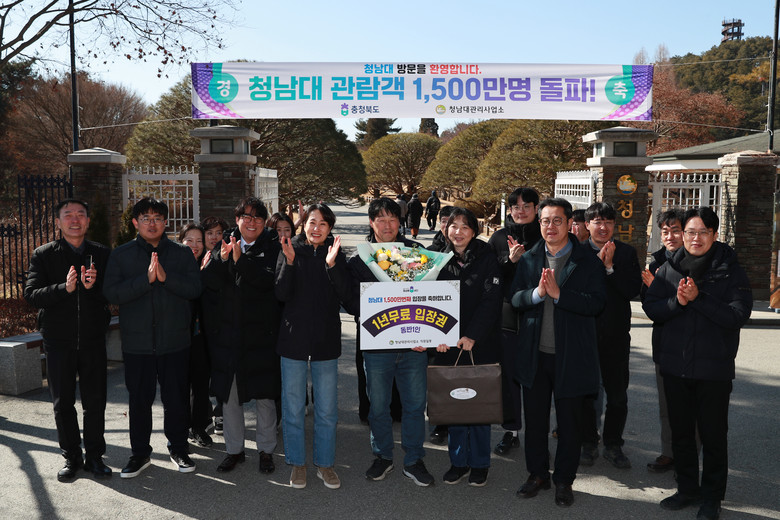 이날 1,500만 번째로 입장한 관람객은 윤희경 씨(충남 태안‧51세) 부부로, 강추위가 한결 누그러진 날씨에 나들이 겸 청남대를 찾았다가 깜짝 행운의 주인공이 됐다.