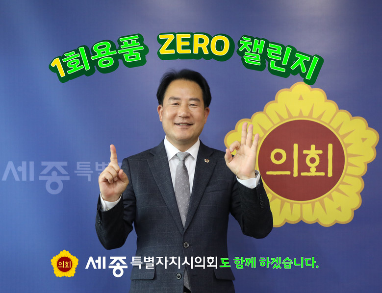 [세종 세계타임즈=이채봉 기자] 상병헌 세종시의회 의장은 11일 ‘1회용품 제로 챌린지’에 동참해 1회용품 사용을 줄이고 다회용품 사용을 늘리자고 제안했다.