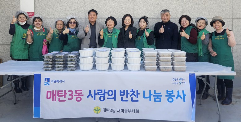 ‘사랑의 반찬 나눔’은 어려운 이웃들에게 반찬을 나누는 새마을부녀회의 대표 봉사활동이다. 매탄3동 새마을부녀회는 연 4회 정기적으로 반찬을 나눔으로써 이웃 간의 소통에 앞장서 아름다운 지역사회를 만드는 데 기여하고 있다.
