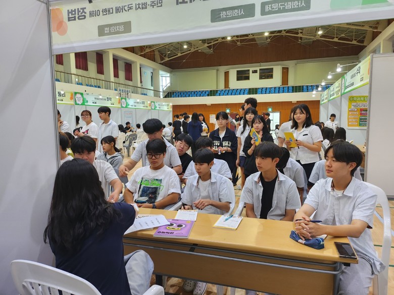 [전남 세계타임즈=우덕현 기자] 지난 4일 영광고등학교 체육관에는 1~2학년 학생들이 삼삼오오 모여 2025학년도에 수강할 선택과목을 알아보고, 학습 계획을 세우는 박람회가 열렸다. 학생들이 자신의 진로·진학에 걸맞도록 시간표를 짜고, 자기 주도적으로 교육과정을 선택하도록 지원하고 있어 눈길을 끈다.