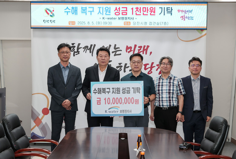 박규영 지사장은 “k-water는 깨끗한 물을 공급하는 것뿐만 아니라, 지역사회와의 상생도 중요한 책무라고 생각한다”며 “수해로 어려움을 겪고 있는 당진 시민들께 조금이나마 보탬이 되기를 바란다”고 말했다.