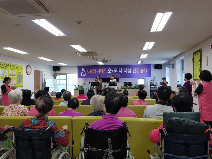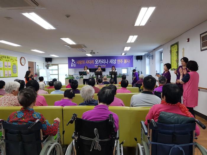 윤유미 원장은 “오늘 사랑의 사다리 밴드의 오카리나 연주 봉사가 치매어르신들께큰 위안과 기쁨이 되었다.“면서 감사함을 전했다.