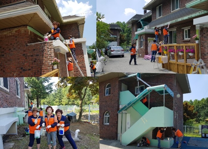 이날 페인트 도색 봉사에는 김준민 단장을 비롯해서 회원 20명이 4개동의 건물 외벽 페인트 봉사를 하였다.