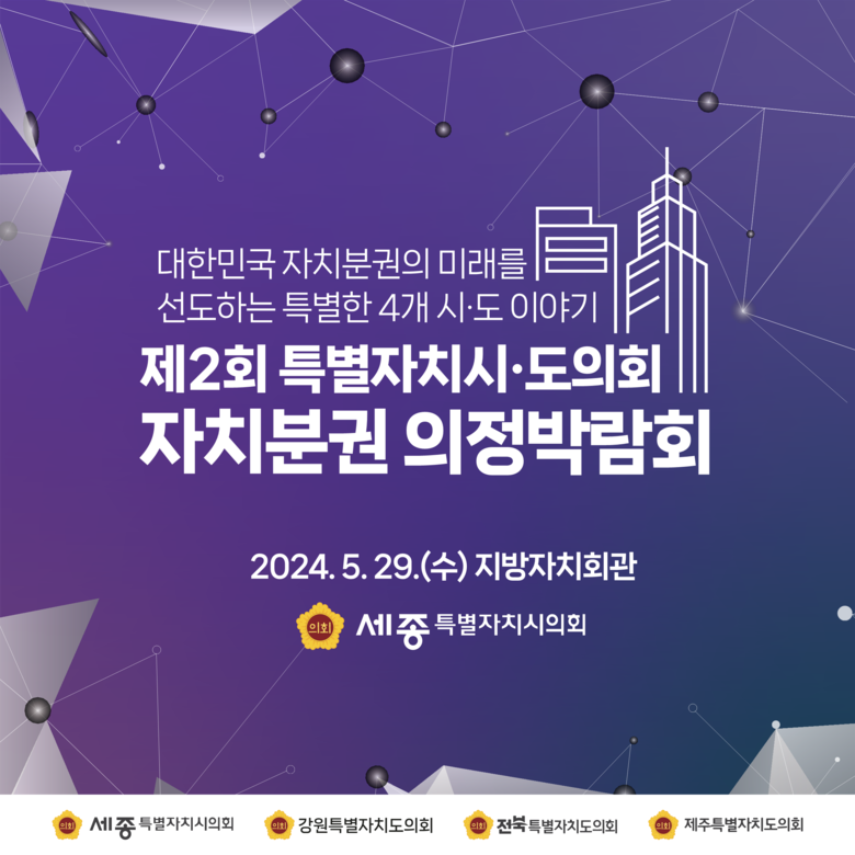 4개 특별자치시‧도의회는 이번 의정박람회를 계기로 공동 성명서 발표는 물론, 특별자치시‧도의 주요 현안 및 비전에 관한 논의를 통해 협업 과제를 발굴할 예정이다. 아울러 논의로부터 수렴된 내용은 이후 실질적인 정책 대안을 수립하는 데 적극 활용할 계획이다.