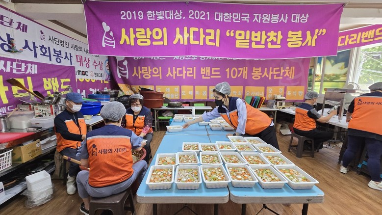 [대전 세계타임즈=이채봉 기자] 지방자치단체의 보조금 지원 없이 8년째 다양한 봉사를 실천하고 있는 사랑의 사다리 밴드(리더 이정제) 봉사단체는 지난 3일 맛있는 밑반찬을 만들어서 대덕구 소외계층 80가정에 따뜻한 사랑을 실천하였다.
