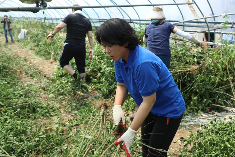 21일에는 오전 9시부터 오후 1시까지 시의원 8명과 직원 22명이 연서면 파프리카 및 고추밭 비닐하우스 수해 현장을 방문해 쓰러진 농작물을 뽑아내고 상한 뿌리를 솎아내는 등 복구에 힘썼다. 아울러 많은 작업량으로 인해 오후 1시부터 6시까지는 시의원 1명과 직원 20명이 같은 작업을 이어받아 농가 피해 수습에 구슬땀을 흘렸다.