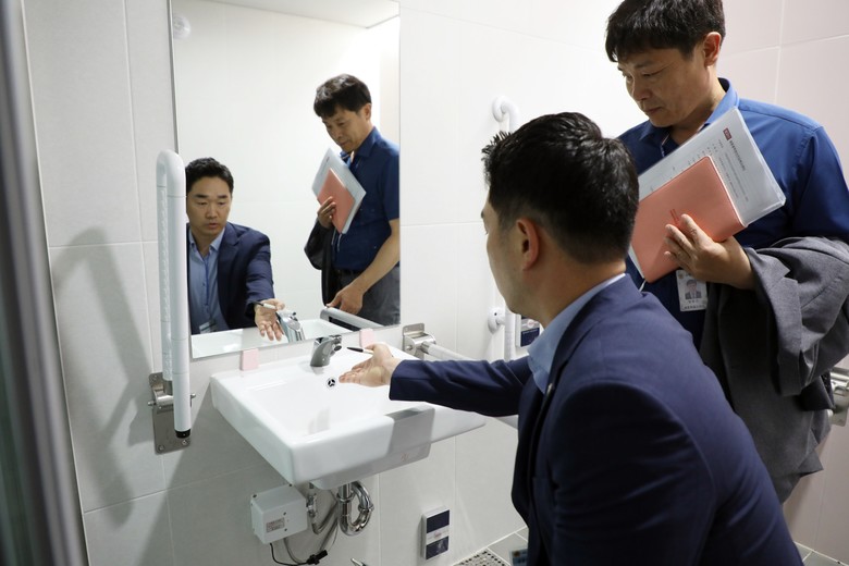 이번 점검 과정에서는 ▲장애인화장실 출입구 바닥 높이 부적정 ▲벽면 마감 시공 불량 ▲기계실 결로 발생 ▲점자안내판 표시 개선 필요 등을 지적했다. 특히 천장 누수 실정을 확인하며 미흡한 방수 시공 보완에 대해 강력하게 요구해야 한다는 목소리가 나왔다.