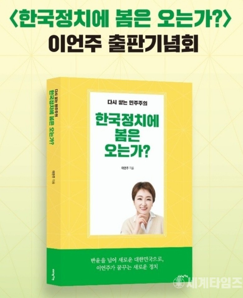 [세계타임즈 = 이진화 기자] 이언주 전 국회의원(19.20대)은 오는 8일 오후 부산 영도 아델라 호텔 24층에서 출판기념회 및 토크콘서트를 개최한다.