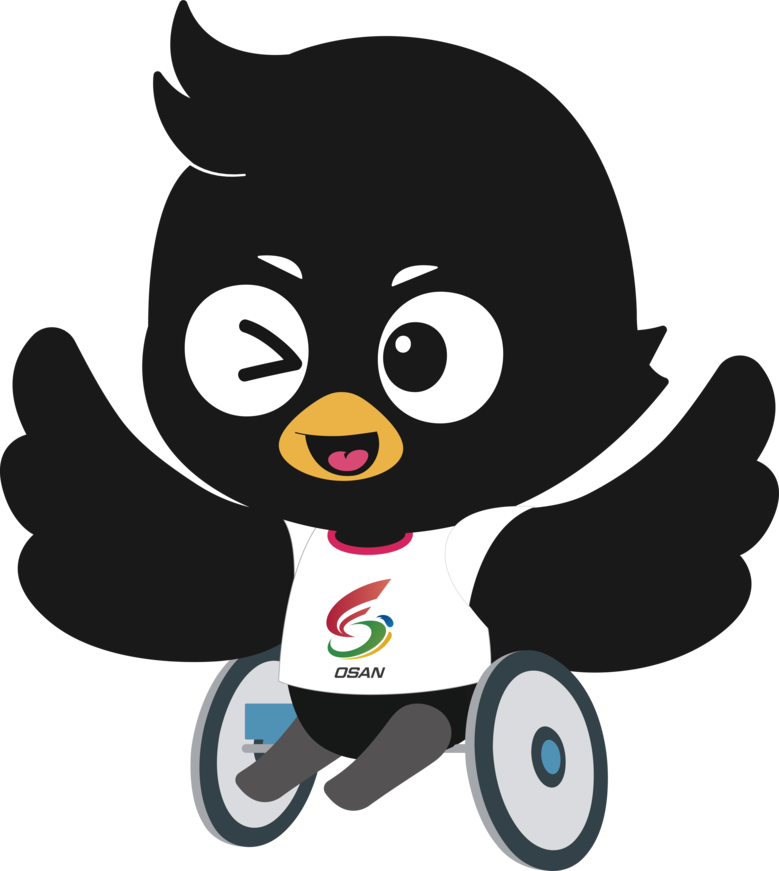마스코트는 엠블럼을 보완하는 핵심 시각 요소로, 오산시를 대표하는 기존 캐릭터 ‘까산이’를 스포츠 콘셉트로 재해석했다. 친근한 이미지를 유지하면서도 역동적인 동작과 표정을 더해 체육대회의 현장성과 활력을 강조했으며, 비장애인·장애인 종목별 응용형과 시설물·행사용 응용형 등 다양한 활용이 가능하도록 설계됐다.