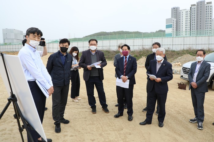 이날 대학특위 위원들은 LH 세종특별본부 담당자로부터 개별캠퍼스 4-1 및 4-6 구역과 공동캠퍼스 구역의 현장 부지 확인 및 향후 계획에 대한 설명을 듣고 현장 곳곳을 살펴봤다.