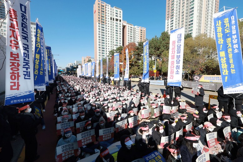 참석자들은 결의문 낭독 후 “정치와 종교를 분리하라”, “편파적 행정을 중단하라”는 구호를 외치며 항의했다.