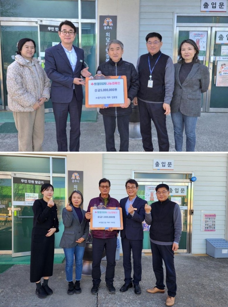 이날 ㈜홍익산업(대표 김동엽)은 성금 500만 원을, ㈜청용건설(대표 이무연)은 성금 100만 원을 기탁했으며, 기탁된 성금은 관내 저소득 취약계층 지원과 복지 사각지대 해소를 위한 사업에 사용될 예정이다.