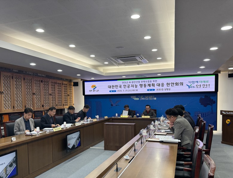 -범정부 재난 안전 인공지능 전환 계획 반영 건의 및 국가 표준 모델화 추진- [세계타임즈=연천군 송민수 기자] 연천군은 지난 25일 군청 상황실에서 ‘대한민국 인공지능 행동계획 대응 현안 회의를 개최하고, 정부의 AI G3 도약 비전에 발맞춘 연천형 AI 실증사업 추진 전략을 집중 점검했다고 밝혔다.