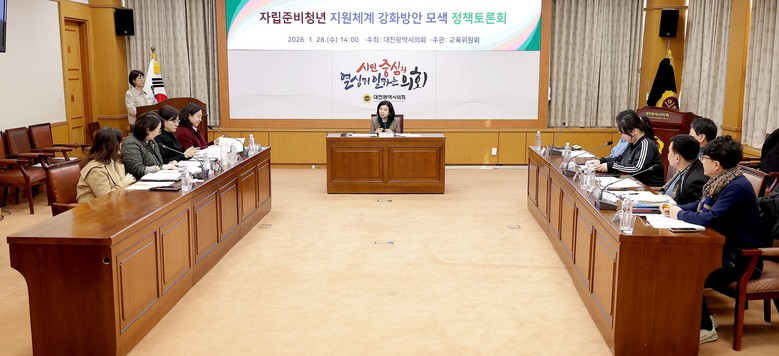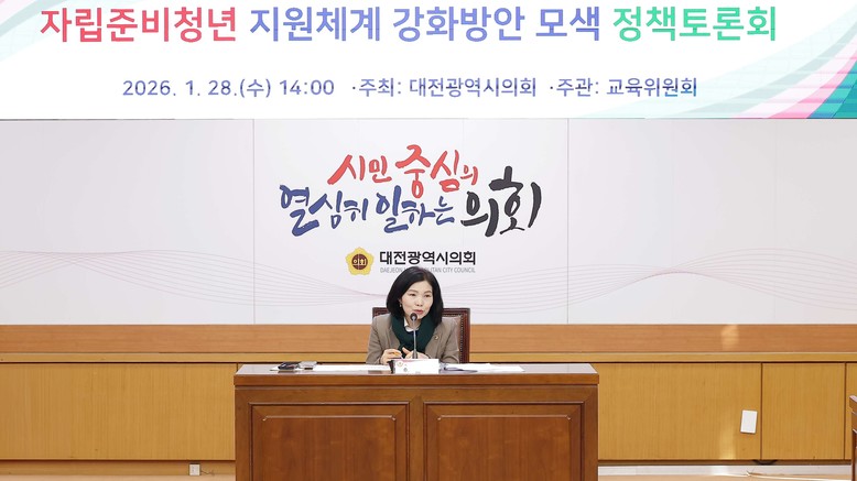 [대전 세계타임즈=이채봉 기자] 대전시의회는 28일 시의회 3층 소통실에서 「자립준비청년 지원 체계 강화방안 모색 정책토론회」를 개최하고, 보호종료 이후 자립준비청년이 지역사회 안에서 안정적으로 정착할 수 있는 지원체계 구축 방안을 논의했다.