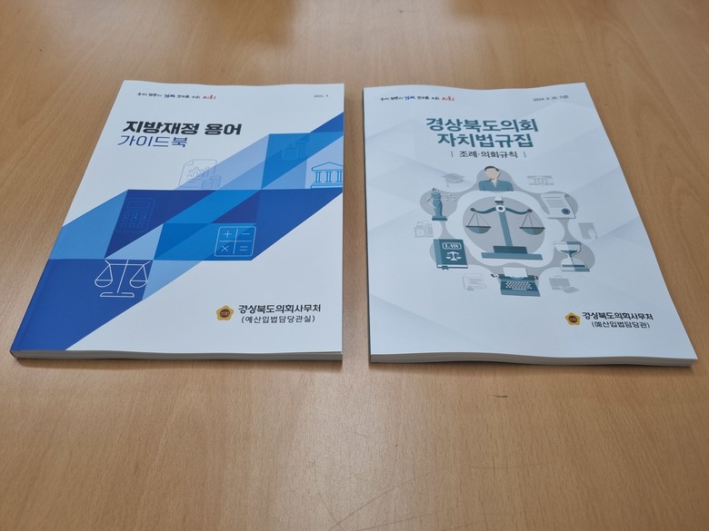 [경북 세계타임즈=한윤석 기자] 경상북도의회(의장 박성만)는 도의원들의 의정활동 지원과 역량을 강화하기 위해 「지방재정 용어 가이드북」과 「경상북도의회 자치법규집」을 발간하여 도의원들과 의회사무처 직원들에게 제공했다.