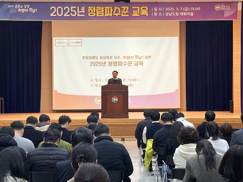 - 청렴도 최상위권 유지 위한 종합대책 교육 및 관리체계 안내 [세계타임즈=경남 최성룡 기자] 경상남도(도지사 박완수)는 7일 오후 도청 대회의실에서 도 본청, 직속기관‧사업소 청렴 담당자 등 140여 명이 참석한 가운데 ‘청렴 파수꾼 교육’을 실시했다.