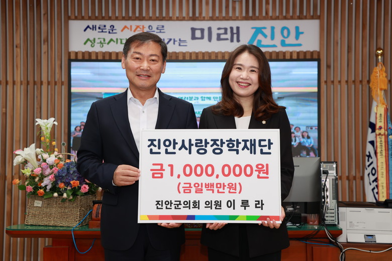 [진안 세계타임즈 = 이채봉 기자] 진안군의회 이루라 의원이 6일 진안사랑장학재단(이사장 전춘성)에 장학금 100만원을 기탁했다.