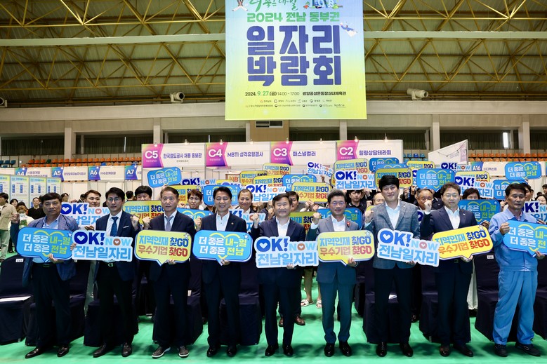 이날 열린 동부권 일자리 박람회에는 김영록 지사와 기업 대표자를 비롯해 구인‧구직자 등 1,000여 명이 참석했으며, 지역인재 우선채용 협약식과 포퍼먼스, 행사장 라운딩 순으로 진행됐다.