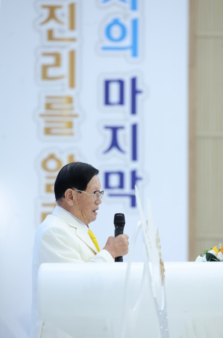 [종교=세계타임즈 = 이영임 기자] 21일 오후 2시 신천지 광주교회 성전 4층에서 신천지 말씀대성회가 개최된 가운데 이만희 총회장이 강연하고 있다.