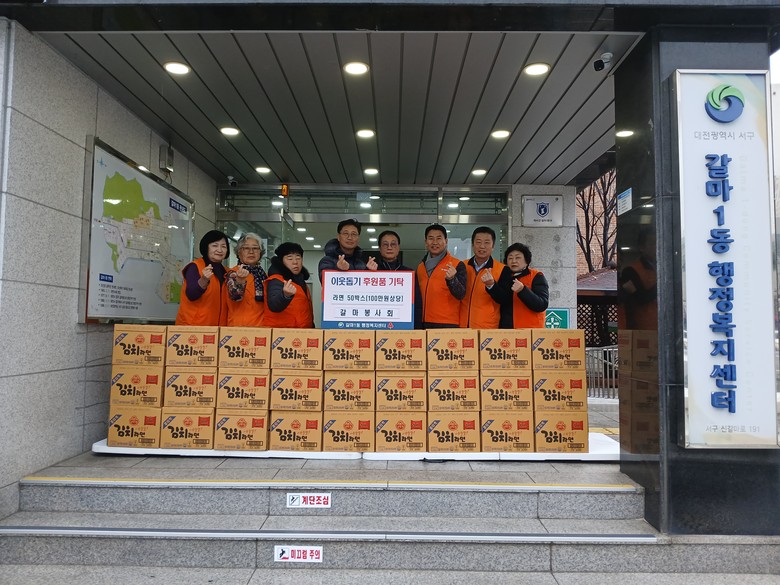 갈마1동 행정복지센터는 ‘갈마봉사회’로부터 어려운 이웃을 위한 라면 50박스(100만 원 상당)를 기탁받았다고 11일 전했다.