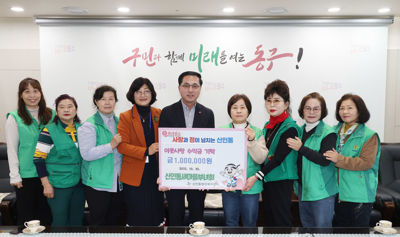 박희조 동구청장은 “꾸준한 봉사와 나눔으로 지역사회를 밝혀주시는 신인동 새마을부녀회에 깊이 감사드린다”며 “기탁된 성금은 도움이 필요한 이웃들에게 소중히 전달하겠다”고 전했다.