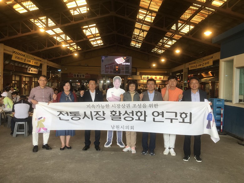 남원시의회 의원연구단체‘전통시장 활성화 연구회’는 지역 전통시장의 가치를 알리고 지역경제 활성화 정책발굴을 목표로 2023년 4월 18일 시의회 3층 자치행정위원회 회의실에서 발족했다. 해당연구단체는 강인식 의원을 대표의원으로 이미선, 이숙자, 한명숙, 오동환, 소태수 의원이 활동한다.‘전통시장 활성화 연구회’는 4월 18일 발족 및 간담회를 가지고 5월 15일 충북 단양 국경시장과 충남 예산시장 성공사례에 대한 벤치마킹에 나섰다. 이날 방문을 통해 시장으로의 유인책 및 지역의 특산물을 이용한 다양한 먹거리 개발 정책을 살펴보았으며 침체 위기의 지역인 남원 전통시장의 개선점을 찾아 남원형 전통시장 성공모델을 제시했다. 앞으로도 전문가 초청 간담회 추진, 선진지 견학 등을 진행하며 소규모 연구 용역을 진행하여 전통시장의 객관적 현실에 대해 분석하고 지속가능한 시장생태계 조성을 위한 연구활동을 올해 11월까지 이어갈 예정이다.