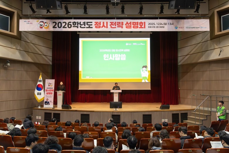 [마포구 세계타임즈=이장성 기자] 박강수 마포구청장은 12월 14일 마포구청에서 열린 ‘2026학년도 정시 전략 설명회 및 1:1 진학 컨설팅’ 현장을 찾아 수험생과 학부모를 격려했다.