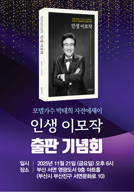 한편 출판기념회는 오는 11월 21일 오후 6시 부산 서면 영광도서 9층 아트홀에서 독자와 팬들이 함께하는 가운데 열린다. 저자는 그날 직접 노래와 이야기를 통해 자신의 인생 이모작 스토리를 들려줄 예정이다. 책은 영광도서, 교보문고, 영풍문고, 예스24, 알라딘 등에서 구입할 수 있다.