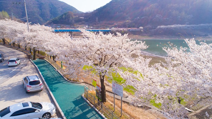 벚꽃을 구경하기 좋은 코스는 단양읍 소금정공원~상진대교 구간과 고수동굴 인근도로, 단성면 강변산책로이다.
