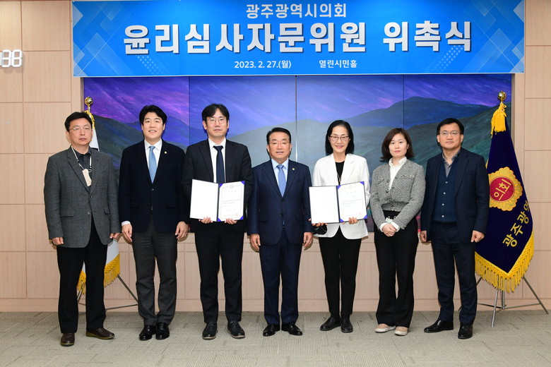 [광주 세계타임즈=손권일 기자] 광주광역시의회(의장: 정무창)는 2월 27일(월) 시의회 열린시민홀에서 윤리심사자문위원회 위촉식을 개최했다.