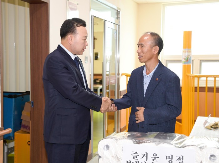[광주=세계타임즈 손권일 기자]광주광역시의회 김익주 행정자치위원장은 추석 명절을 앞둔 9월5일 광산구에 위치한 광주 카리타스 근로시설을 방문해 위문품을 전달하고 소통의 시간을 가졌다