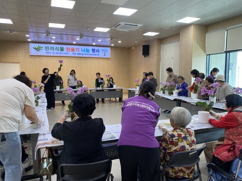 [중구 세계타임즈=이채봉 기자] 대전 중구 태평1동(동장 박상롱)은 22일 태평1동 지역사회보장협의체(위원장 문윤성) 주관으로 1인 가구 어르신 20명을 대상으로 반려식물 만들기 행사를 개최했다고 밝혔다.