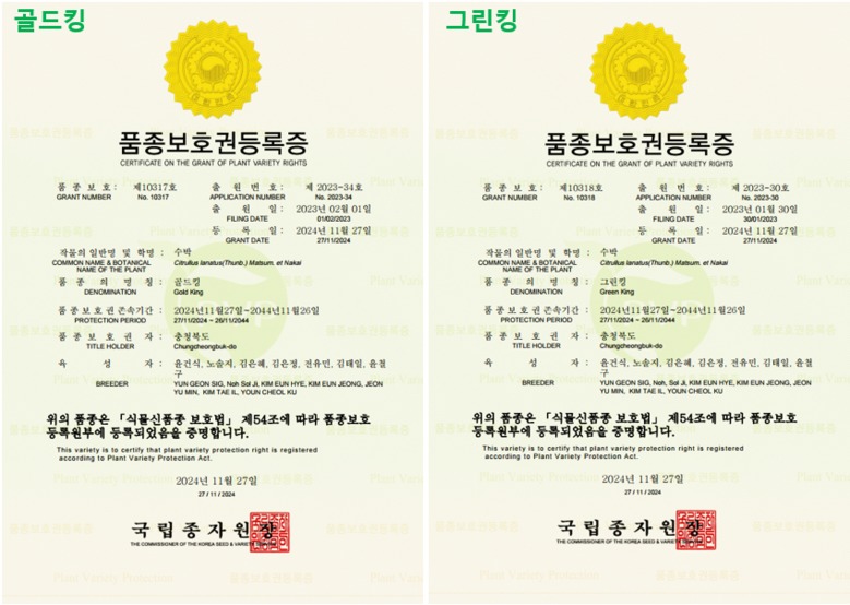 전년도에 ‘골드킹’은 가락시장으로, ‘그린킹’은 현대백화점에서 시범 판매하여 시장의 호응과 관심을 많이 받았다. 앞으로 종자 유통업체에 기술이전도 할 계획이다. 진천군 중소형 수박 단지와 음성군 재배 희망 농가를 중심으로 계약재배를 확대해 충북을 중소형 수박 생산단지로 특화할 계획이다.
