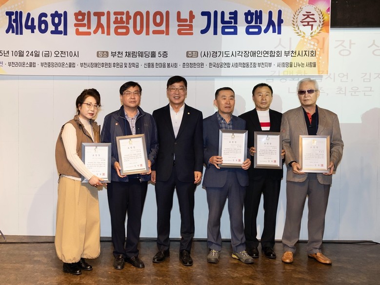 이번 행사는 (사)경기도시각장애인연합회 부천시지회(회장 이길준)가 주관했으며, 시각장애인과 가족, 자원봉사자 등이 참석한 가운데 유공자 시상과 장학금 전달식 등이 진행됐다.