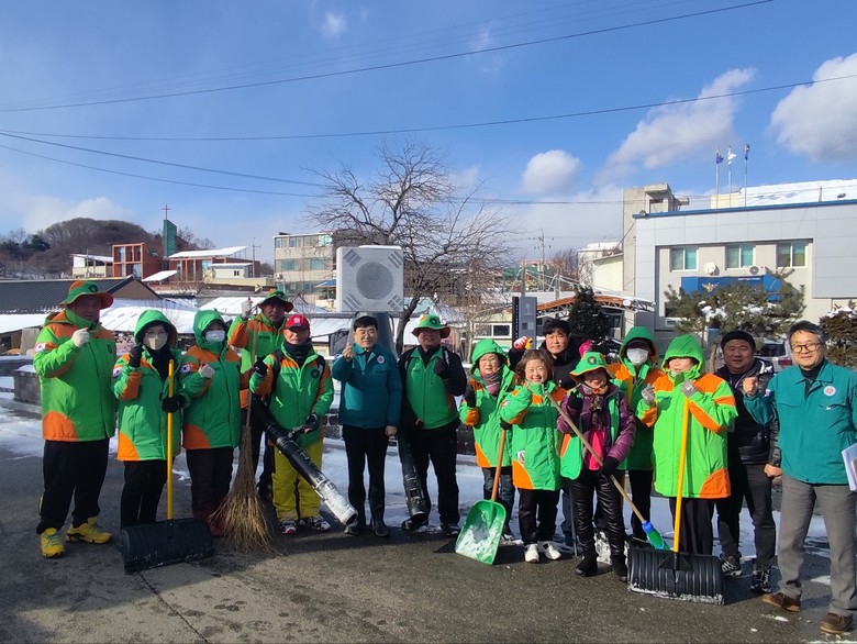 낮은 기온으로 결빙이 쉬운 인도는 읍면동장, 이·통장, 자율방재단 등 민관합동으로 제설을 진행했다.