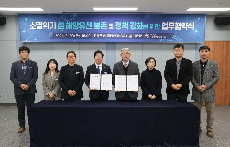 [고흥군 세계타임즈=우덕현 기자] 고흥군(군수 공영민)은 20일 군청 팔영산홀에서 국가유산청 국립해양유산연구소(소장 이은석)와 ‘고흥군 섬 해양유산조사 업무협약’을 체결했다고 밝혔다.
