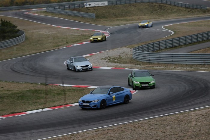 [사진설명] BMW M Class에 참가하는 드라이버들이 8일 인천시 중구 운서동의 BMW 드라이빙 센터에서 진행된 레이싱 스쿨에 참가해 주행실습을 하고 있다.