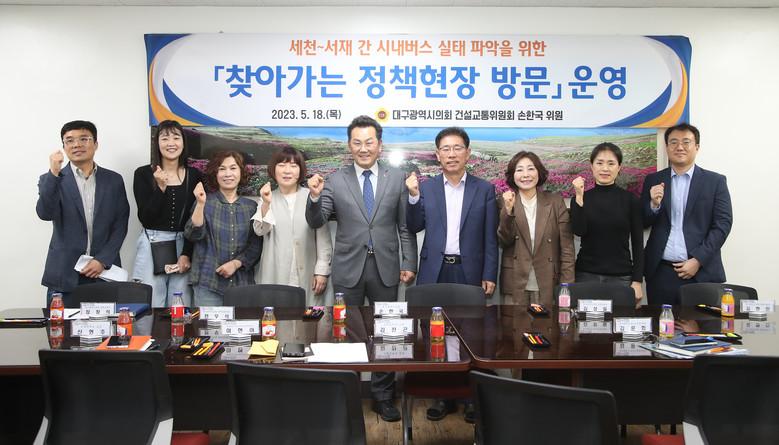 [대구 세계타임즈=한성국 기자] 대구시의회 손한국 의원(건설교통위원회, 달성군3)은 5월 18일(목) 세천리, 서재리 학생들의 통학 실태를 살펴보고, 서재중학교 교사 및 지역 주민들과 만나 시내버스 노선의 문제점 등에 대해 논의했으며, 불합리한 시내버스 노선에 대한 대구시의 적극적인 대응을 주문했다.