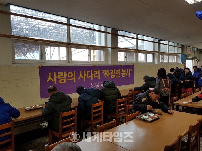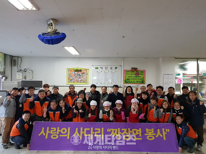 [대전=세계타임즈 이장성 기자] 6천명 회원들이 활동하고 있는 SNS 봉사단체인 사랑의 사다리 밴드(리더 이정제)는 5일 유성구 학하동에 위치한 정신요양시설 심경장원(원장 송진만)에서 250그릇 짜장면 봉사로 우리 사회의 따뜻한 정을 나누었다.