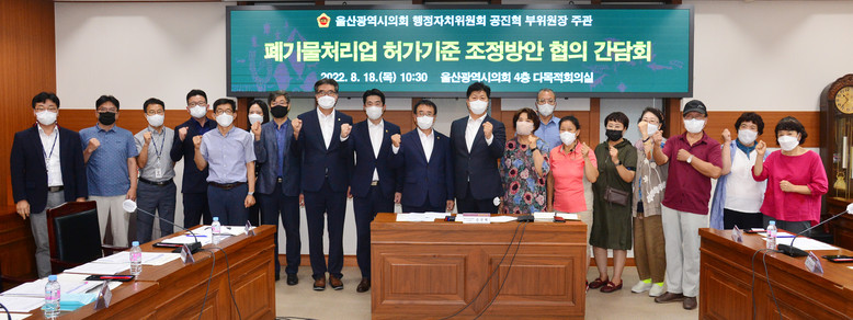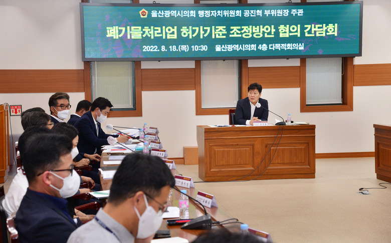 [울산 세계타임즈=이호근 기자] 울산광역시의회 공진혁 행정자치위원회 부위원장은 18일 오전 10시 30분, 시의회 4층 다목적회의실에서 ‘폐기물처리업 허가기준’에 관한 주민 의견 청취 간담회를 개최했다.