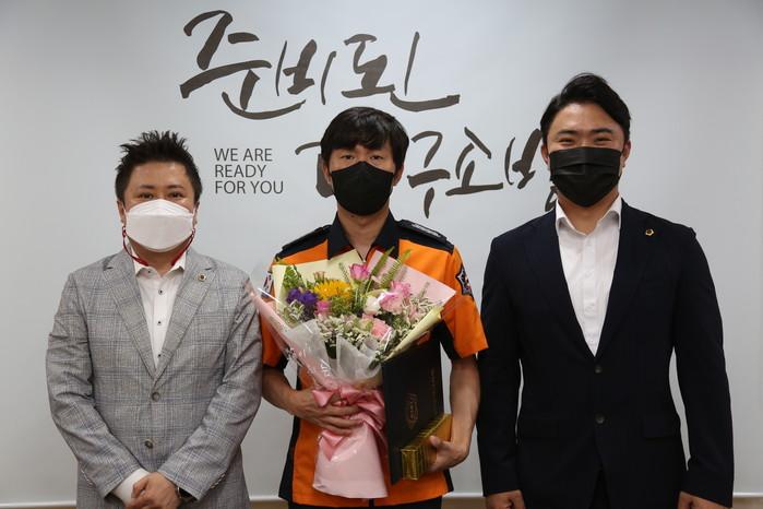 [대구=세계타임즈 한성국 기자] 대구광역시의회(의장 장상수)는 7월 1일(목) 소방본부를 찾아 지난 6월 8일(화) 신고자의 작은 신음 소리도 놓치지 않고 대응하여 시민의 생명을 구한 소방안전본부 119종합상황실 이창복 소방장에게 표창을 전수하며 감사의 마음을 전했다.