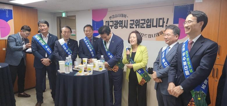 이날 행사에는 김진열 군위군수를 비롯해 박수현 군의회 의장, 박창석 경북도의원 등이 참석했고, 대구시에서는 김종한 행정부시장이 참석해 직접 군위군 농산물을 구입하며 군위군 우수농산물이 대구시 전역에 널리 공급되기를 바란다며 덕담을 나누었다.