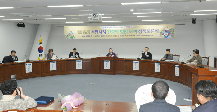 광주시의회는 14일 시의회 예결위원회회의실에서‘주민자치 활성화 방안 모색’을 주제로 정책토론회를 개최했다.