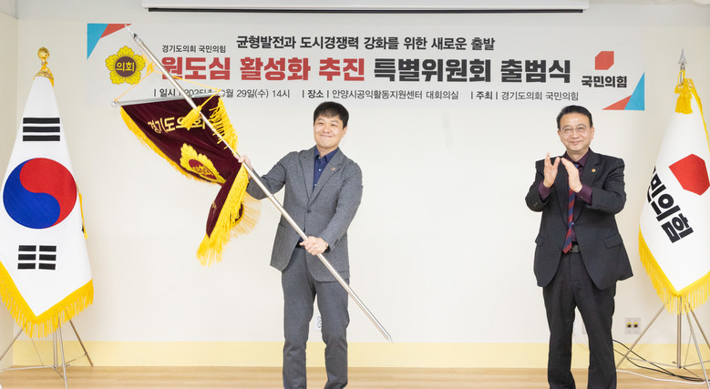 이날 출범식에서 백현종 대표의원은 “오늘 출범하는 ‘경기도의회 국민의힘 원도심 활성화 추진 특별위원회’는 원도심의 역사와 전통, 문화자원의 가치를 살리고 도시의 경쟁력 강화를 도모하는 유능하고 혁신적인 조직으로 기능할 것”이라며 “안양시 발전의 비책과 원도심 혁신의 묘안을 제시해 온 유영일 의원만의 경청과 소통의 리더십이라면, 우리 특별위원회가 원도심의 지속 가능한 성장동력을 창출하는 등 최상의 성과를 거두리라 확신한다”고 말했다.