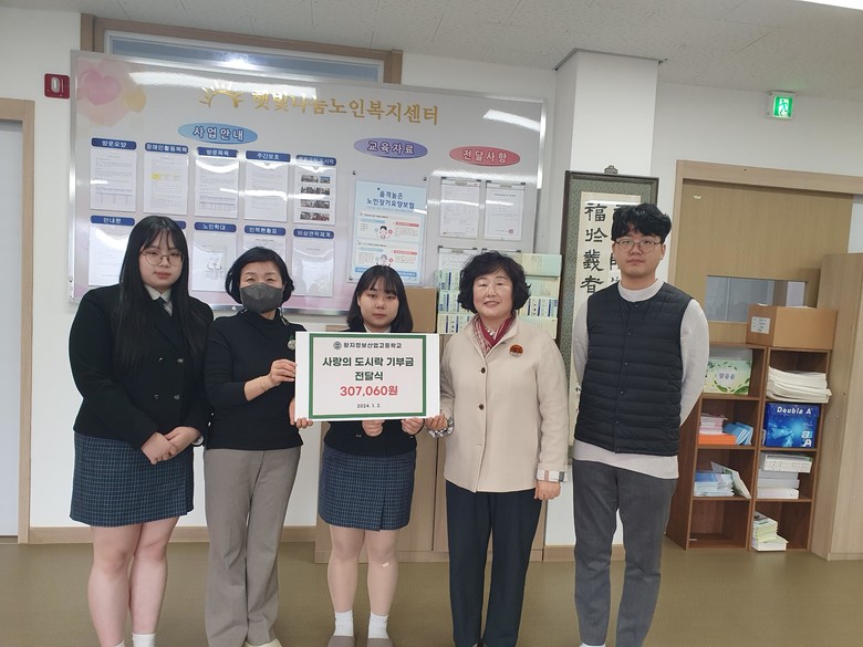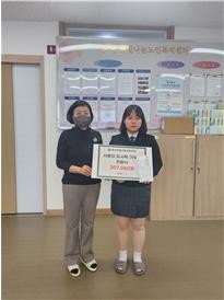 [강원도 세계타임즈=김민석 기자] 황지정보산업고등학교(교장 이인희) 학생자치회는 지난 2일(화) 태백사회복지회가 운영하는 햇빛나눔노인복지센터(센터장 최윤희)를 방문하여 ‘사랑의 도시락’에 307,060원을 기부하였다.