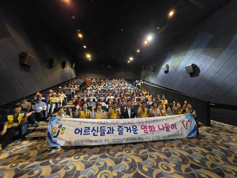 [중구 세계타임즈=이채봉 기자] 대전 중구 유천2동(동장 구순서)은 8일, 자원봉사협의회(회장 유재경)에서 노인일자리 어르신 80명을 모시고 ‘신나는 무비데이’ 행사를 진행했다고 밝혔다.