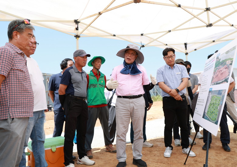 가 군수는 첫날인 11일 ‘중부권 파크골프장’ 조성 현장(근흥면)을 시작으로 ‘만리포니아 해양레저 안전교육센터 건립’ 현장(소원면)과 ‘삭선~원북 지방도 확포장 공사’ 현장, ‘이종일선생 생가지 주변 종합정비·경관개선’ 사업지(이상 원북면), ‘버퉁이 지방관리방조제 개·보수 공사’ 현장(이원면)을 차례로 방문했다.