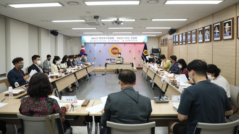 [세종 세계타임즈=이채봉 기자] 세종특별자치시의회 행정복지위원회(위원장 임채성)는 13일 대회의실에서 의정모니터단 행정복지분과와 간담회를 열고 모니터단 운영 및 활동 방향에 대해 논의했다.