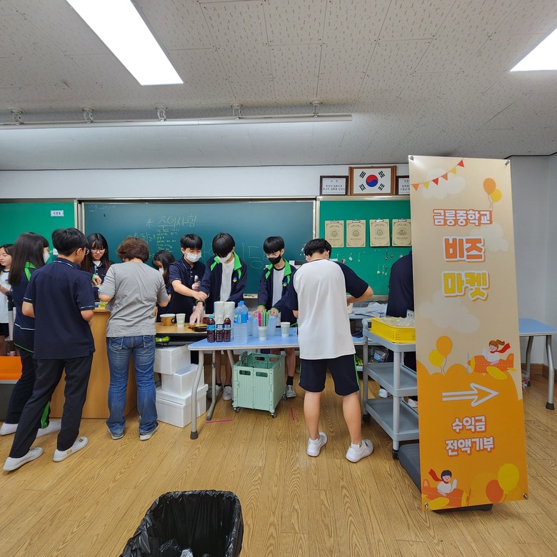 청소년 비즈쿨은 「창업진흥원」지원하여 청소년 기업가정신 확산을 통해 창의성과 도전정신을 갖춘 융합형 창의인재 양성을 목표로 운영되는 프로그램으로, 금릉중학교는 기업가정신 함양을 위한 다양한 프로그램을 운영하여 학생들의 진로역량강화에 노력하고 있다.