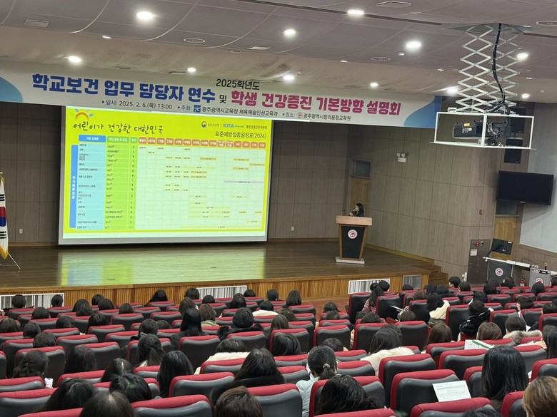 [광주 세계타임즈=손권일 기자] 광주시교육청(교육감 이정선)은 6일 광주창의융합교육원 대강당에서 학교와 교육지원청에서 근무하는 학교보건업무 담당자를 대상으로 ‘2025학년도 학교보건 업무 담당자 연수 및 학생 건강증진 기본 방향 설명회’를 개최했다.